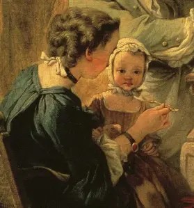 Sin embargo, los filósofos ilustrados del siglo XVIII se dan cuenta de la importancia de esa etapa vital para el desarrollo, recomendando tratar a los hijos con afecto y educarlos con cariño para dar lugar a una persona en plenitud y felicidad; siguiendo los nuevos modos, aquí los pequeños ya están con unos progenitores que les atienden personalmente con dedicación.