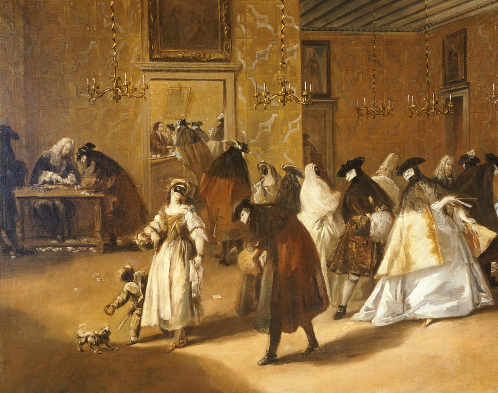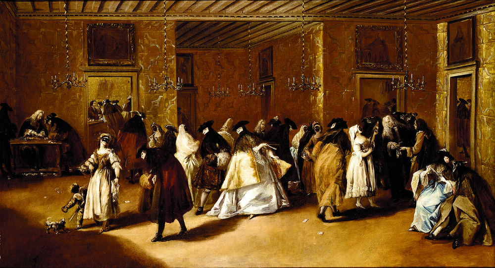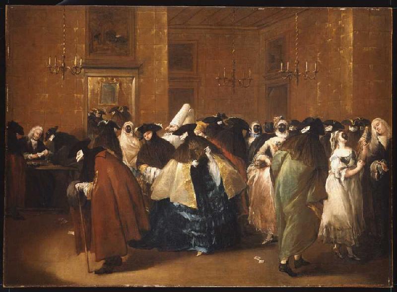 Francesco Guardi – El Ridotto Pubblico en el Palazzo Dandolo (h. 1765-1768, óleo sobre lienzo, 34 x 50 cm, Metropolitan Museum, Nueva York)