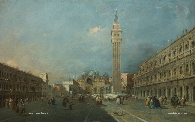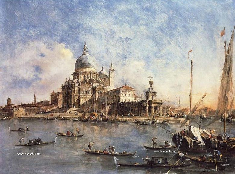Pintor de vedute, junto a sus hermanos de la Clásica Escuela de Pintura Veneciana, caracterizada por la expresión en el color y sus contornos difusos.
