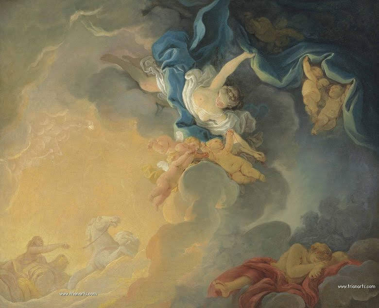 Fragonard estudia durante seis meses bajo la tutela del gran luminista y vuelve al taller de Boucher, donde consigue el estilo de su maestro de tal manera que el maestro le confía las réplicas de sus pinturas.
