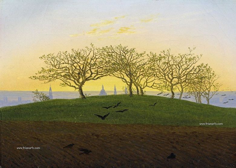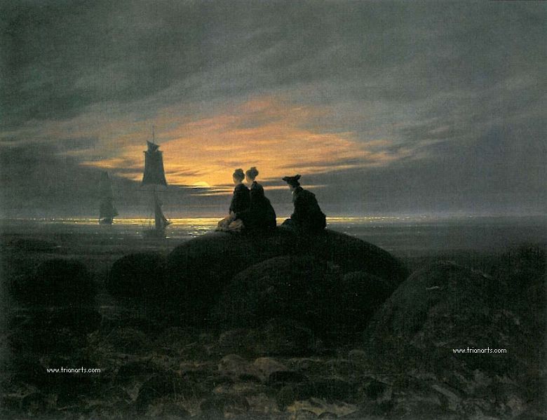 Novalis, quien influye en el pintor, busca la muerte entre la felicidad, la melancolía en la contemplación placentera; en definitiva, afirma que de la conciliación de estos contrarios nace lo sublime.