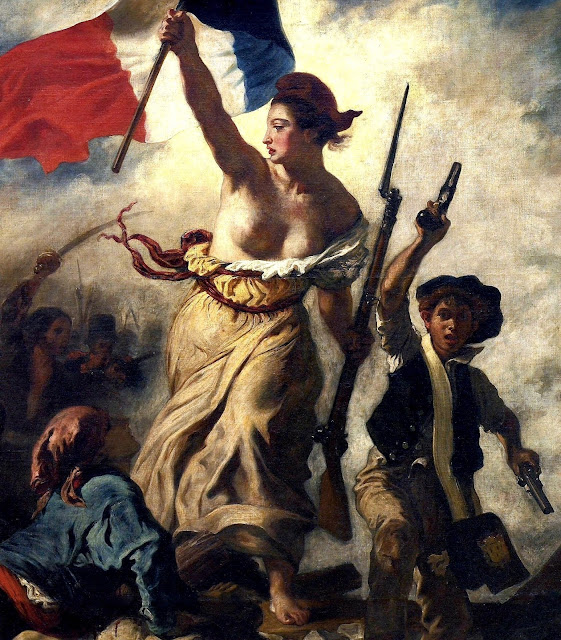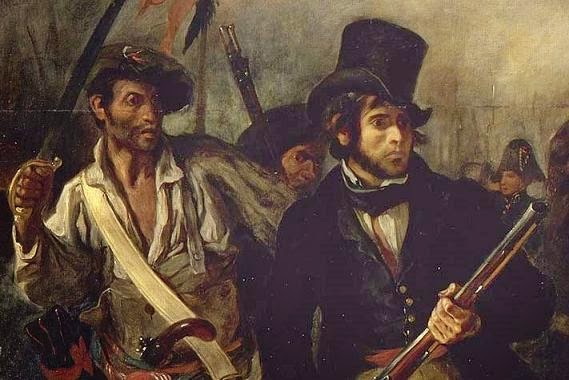 Delacroix esta del lado de los revolucionarios, él mismo se representa en el cuadro como quien lleva el sombrero de copa negro, roja y blanca y que se encuentra entre los combatientes, en primera fila.