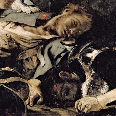 La obra tiene movimiento no solo por los gestos dramáticos de los personajes, y por la composición en diagonales, sino porque los del primer plano avanzan sobre la quietud de los muertos que se encuentran en la base de la composición y todas las formas muestran ondulaciones que ponen de manifiesto la admiración del autor por Rubens.