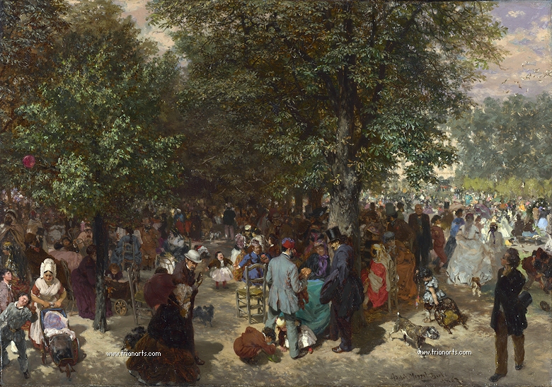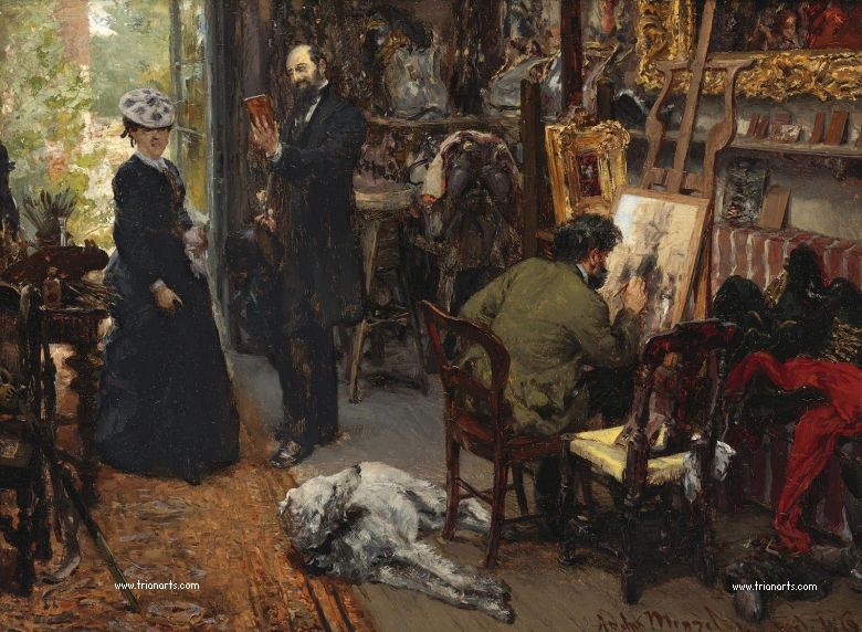 Contempla la realidad sin visión idílica, es un pintor distinguido y reconocido que plasma el panorama general de la sociedad guillermina, desde la suntuosa sociedad cortesana hasta los íntimos interiores burgueses, pasando por las grandes naves de las fábricas.