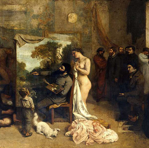 El tema de la creación artística no es inusual pero Courbet lo renueva colocándose en el centro, como protagonista principal. Reivindica así su estatuto de artista.