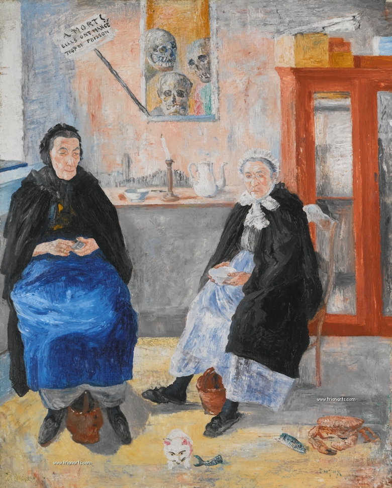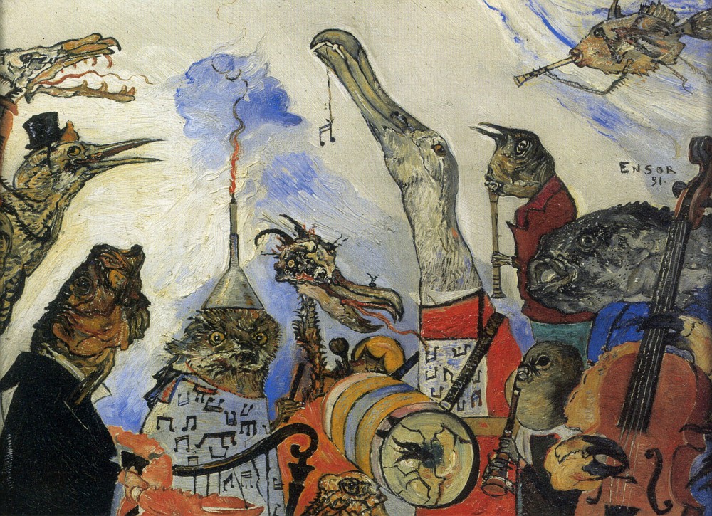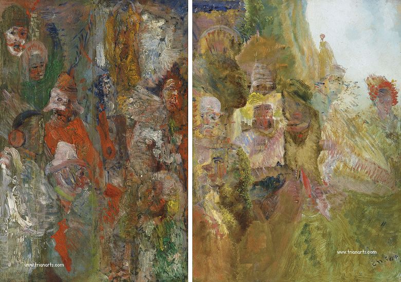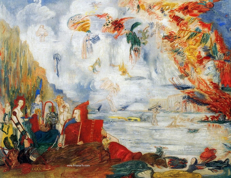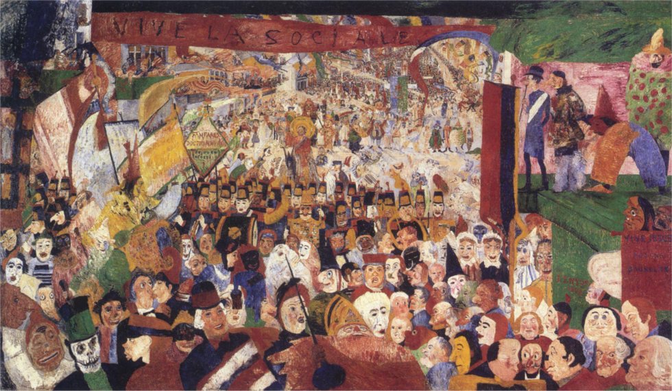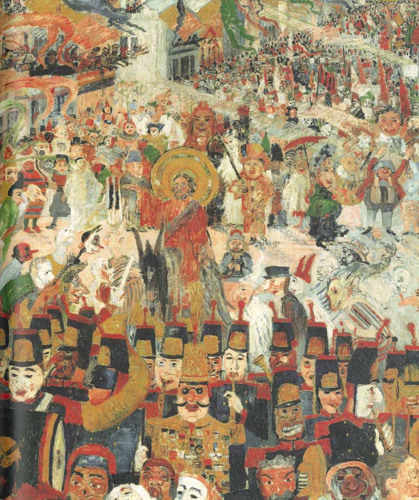 Su obra más famosa es La entrada de Cristo en Bruselas en 1889, un lienzo enorme, plagado de seres extravagantes, herencia directa de los cuadros de El Bosco y Bruegel.