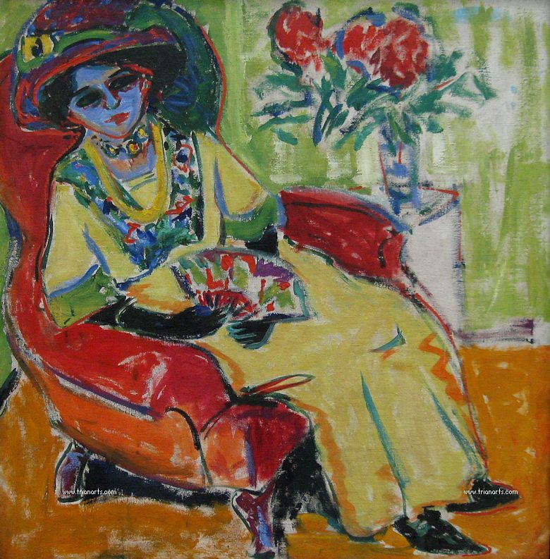 1905 funda con otros estudiantes el grupo Die Brücke (El puente) que pretendía crear un estilo plano con colores puros, inspirado en el arte primitivo y el fauvismo francés.