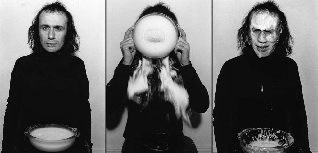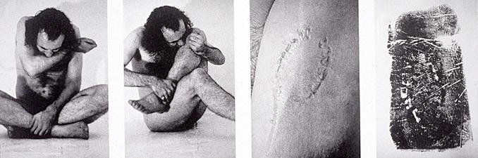 Al autor se le considera como uno de los precursores del arte corporal porque utilizaba su cuerpo como soporte.