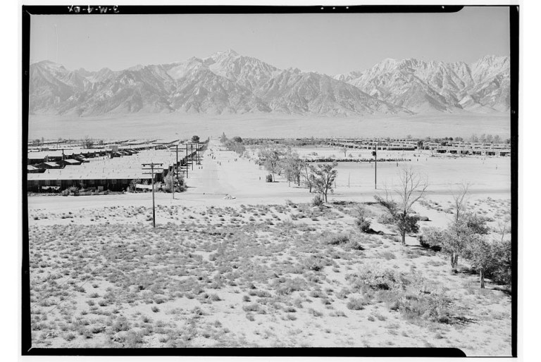 El centro de reubicación de guerra es un eufemismo de campo de concentración llamado Manzanar donde Ansel Adams toma más de 220 fotografías que están en la web de la Biblioteca del Congreso.