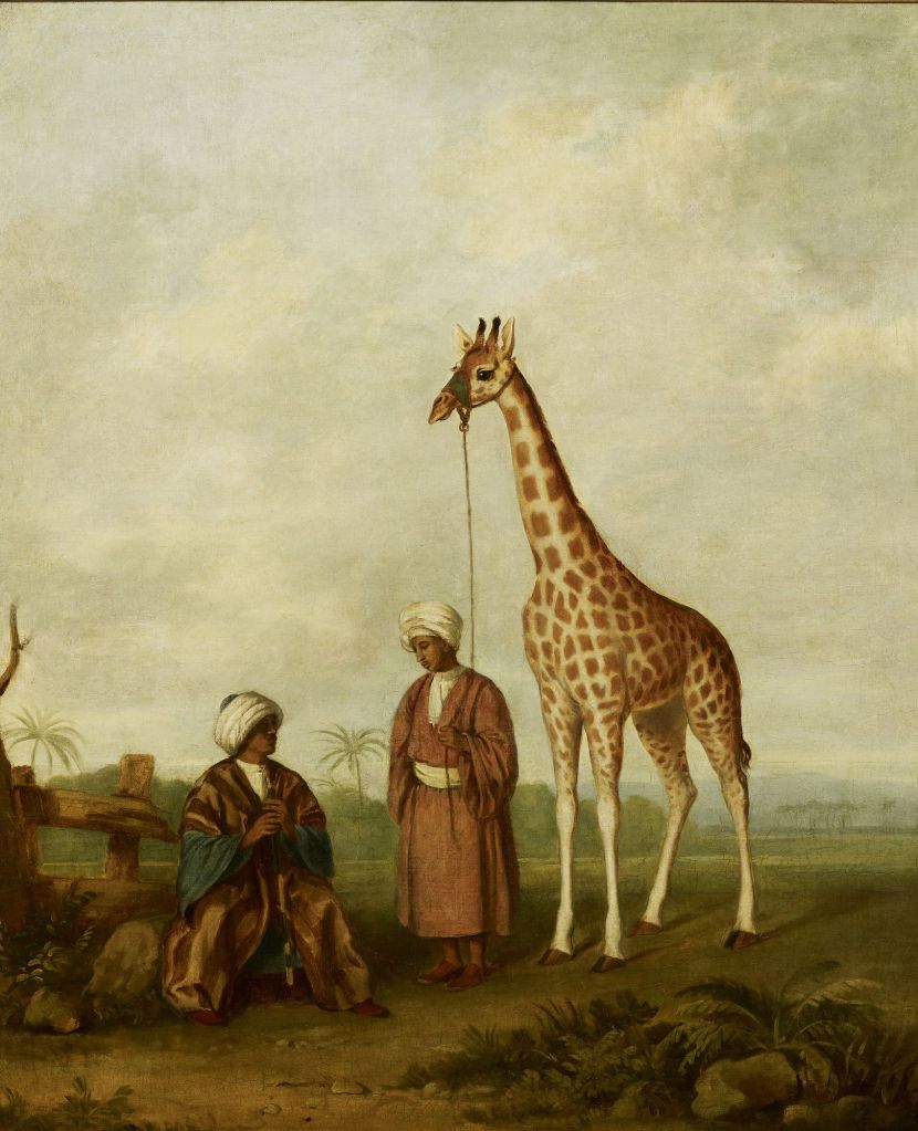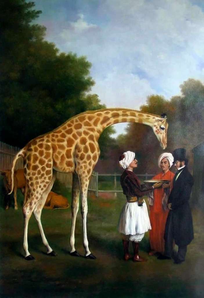El rey Jorge IV de Inglaterra le paga 200 libras por el cuadro de la jirafa y los cuidadores.