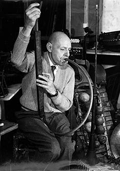 1954 entra en el Colegio de Patafísica, donde realiza su primera serie de esculturas con cenizas, esponja, carbón o piedra volcánica.