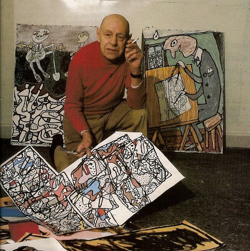 — que el pintor es el francés Jean Dubuffet, que descubrie, explora, colecciona y teoriza sobre el Art Brut y escribe sobre el tema