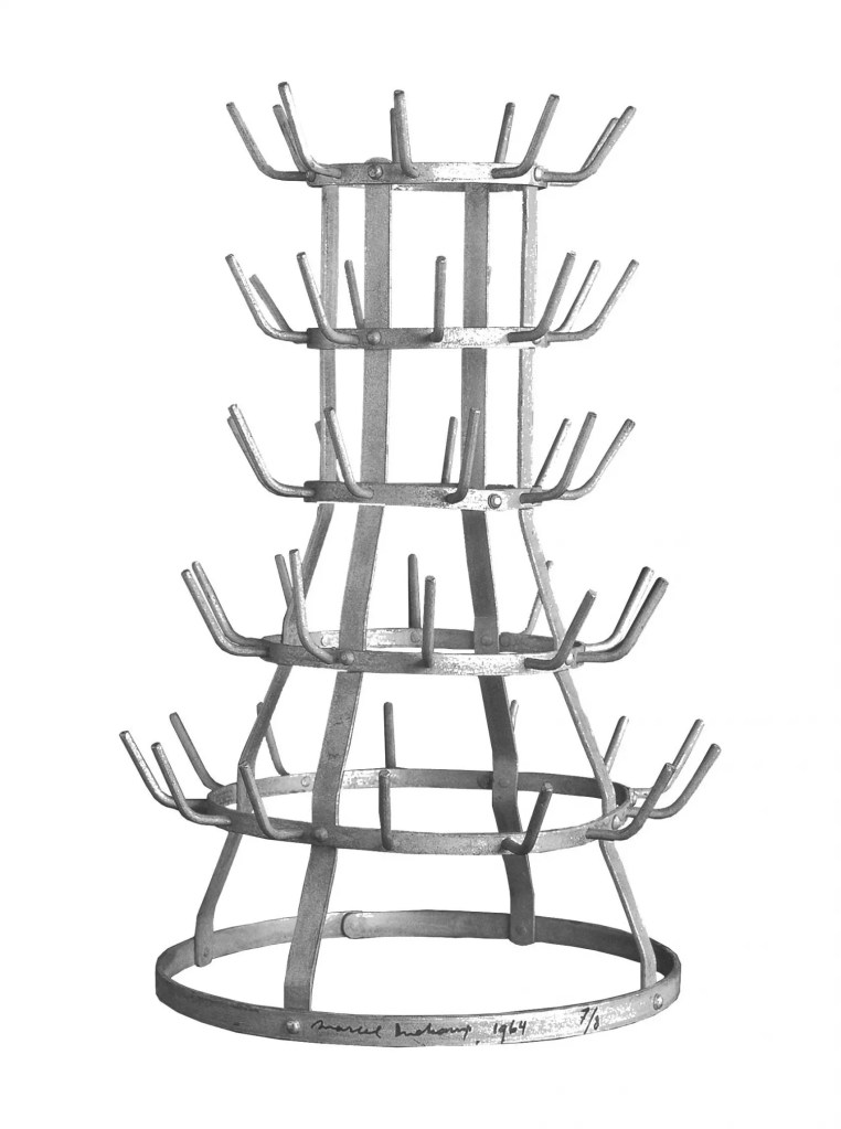 Lo había comprado como si fuera una escultura ya hecha. Y tengo una idea respecto al mencionado porte-bouteilles: Aquí, en New York, he comprado objetos del mismo estilo y los trato como ready-made, sabes bastante inglés para entender el sentido de ya hecho que doy a estos objetos. Los firmo y les anoto una inscripción en inglés.