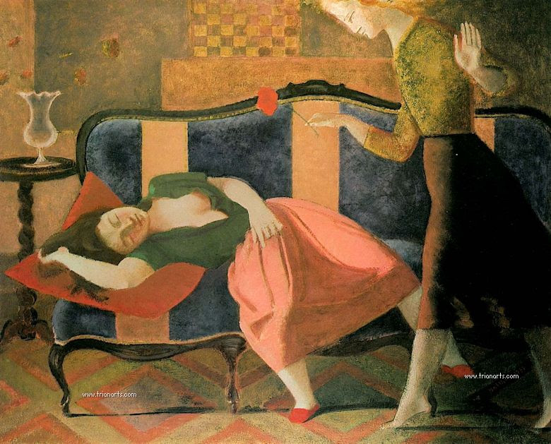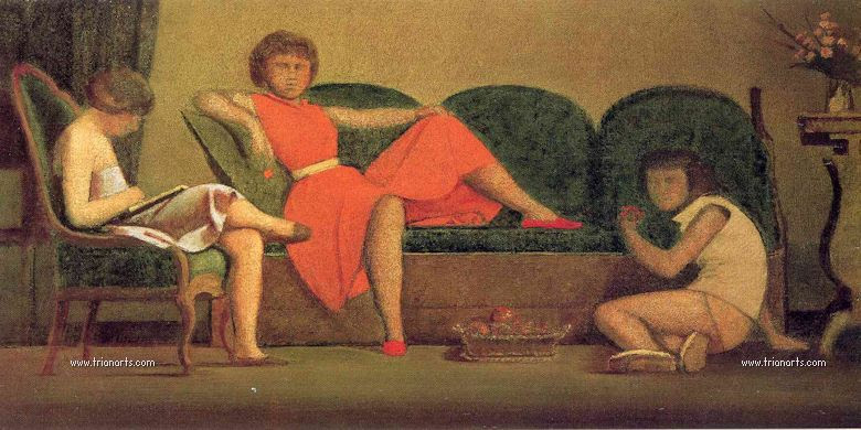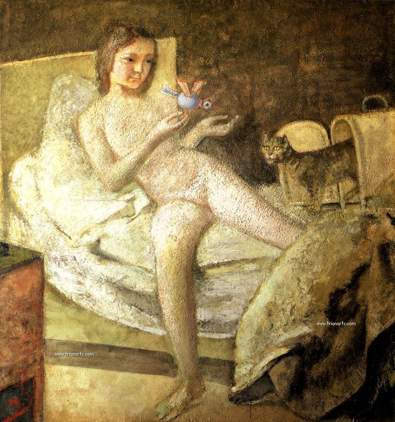 Sus cuadros famosos tienen todos una gran carga erótica, en las que aparecen adolescentes durmiendo, soñando despiertas o leyendo en un interior oscuro.