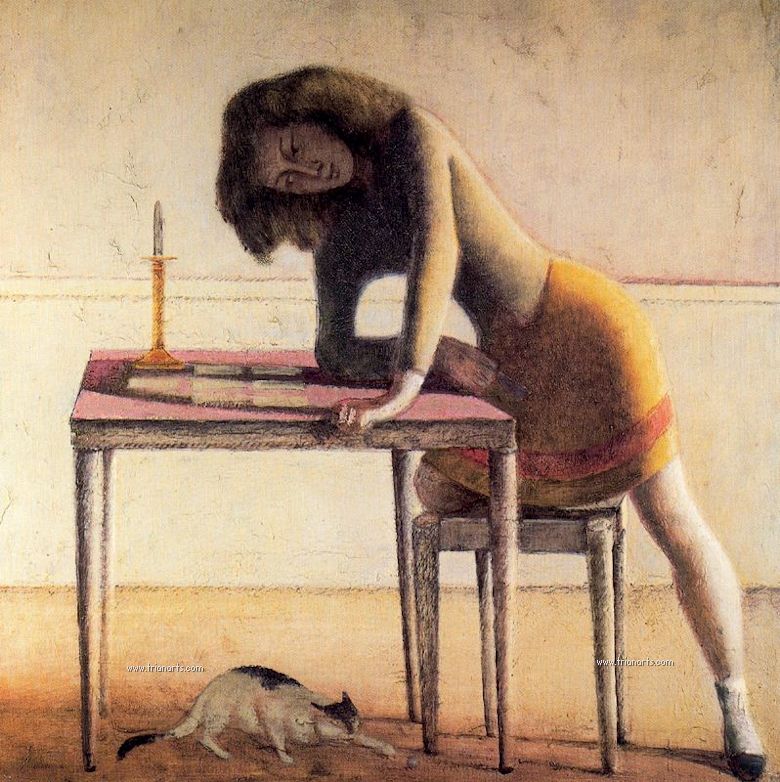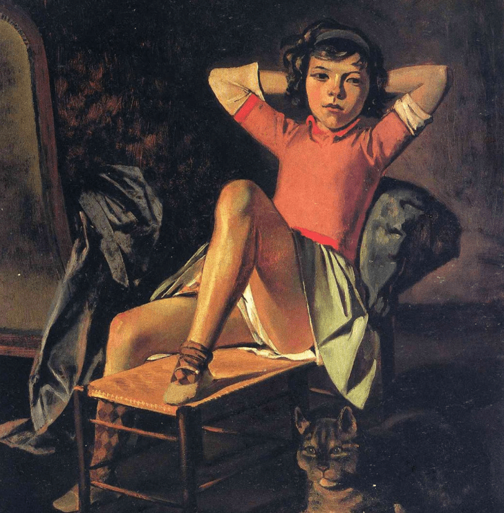 El pintor atrapa aquí el carácter turbador y ambiguo de la adolescencia, cuando la inocencia de la infancia representada por el gato, es desplazada por los nuevos sentimientos sexuales de la edad adulta.