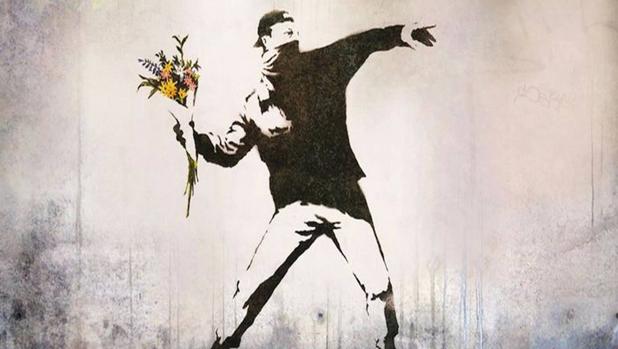 Esta imagen icónica, del hombre lanzando flores o soldier throwing flowers, se ha convertido en uno de sus más famosos y reconocidos grafitis.