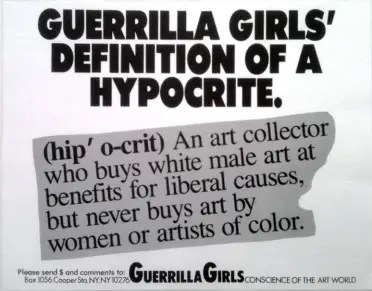 Mediante el uso de datos estadísticos, el buen humor e imágenes chocantes, trabajan para sacar a la luz los prejuicios étnicos y de género en el mundo del arte.