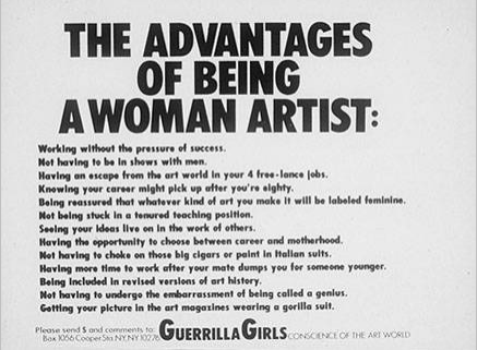 Creado por el grupo Guerrilla Girls es uno de los 30 diseños publicado en su serie de obras Guerrillas Girl Talk Back.