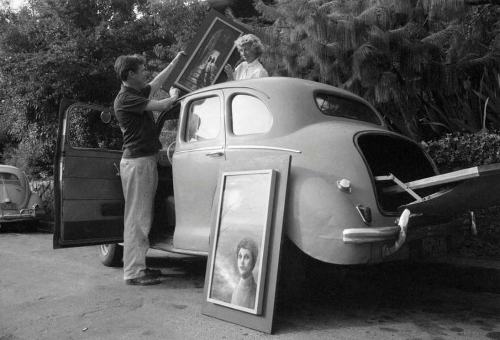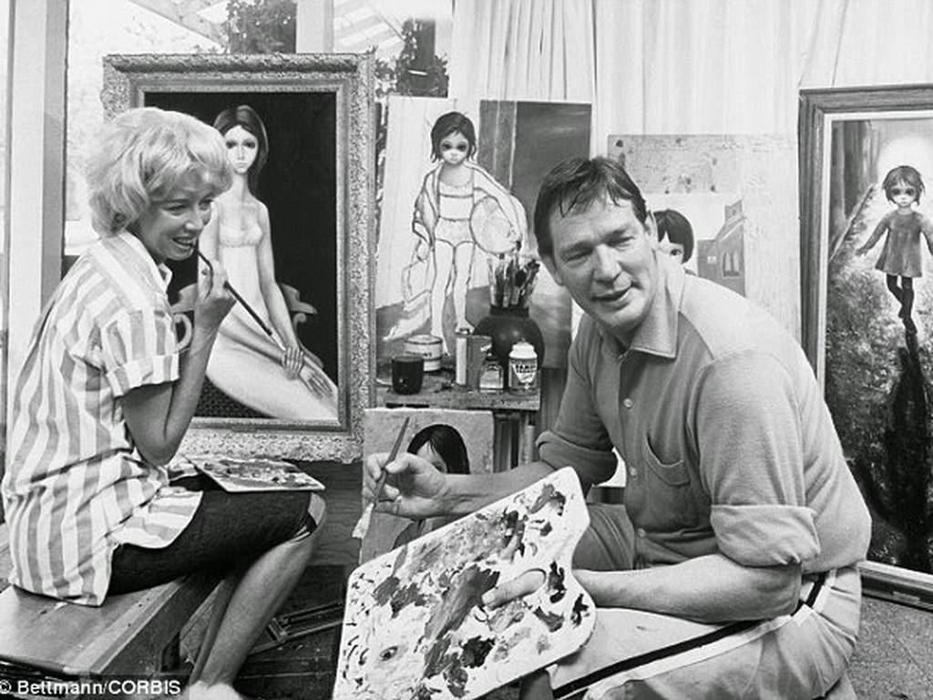 Durante ese tiempo Walter Keane se autoproclama el pintor de los cuadros, mientras que la verdadera autora, Margaret, está encerrada pintando durante largos periodos.