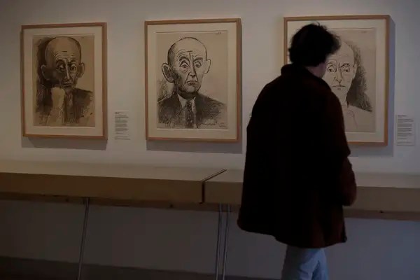 Una imagen de un visitante de la muestra ante los retratos de Kahnweiler por Picasso FOTO: TONI ALBIR EFE