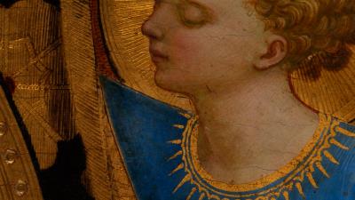 Esta joya ha sido restaurada durante un año en la pinacoteca madrileña con el apoyo de Bank of America. Luce espléndida en la sala 11 del museo en una instalación circular que invita al recogimiento. Una especie de capilla, ideada por Juan Alberto García de Cubas, que tiene una peculiaridad: el cuadro luce su trasera al visitante. Para verlo en todo su esplendor hay que entrar en el espacio. Junto a él, dos instrumentos que Fra Angelico puso en manos de dos ángeles en la parte inferior de la composición (un órgano de mano y un laúd) –en octubre de 2023 Jordi Savall ofrecerá un concierto con un repertorio inspirado en Fra Angelico–, y un vídeo explicativo del proceso de restauración.