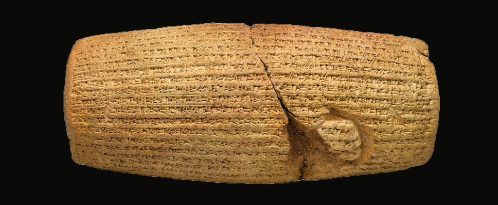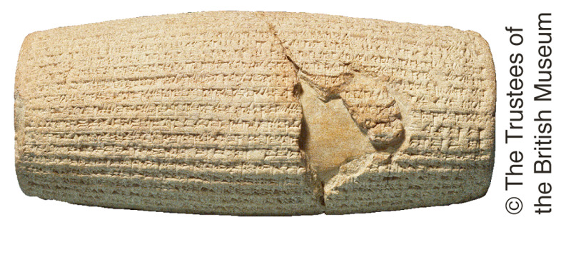 La mayor conquista del rey. El llamado Cilindro de Ciro se conserva en el Museo Británico. En escritura cuneiforme, recoge la conquista de Babilonia y las medidas tomadas por el soberano aqueménida tras la misma. Foto: Scala, Firenze.