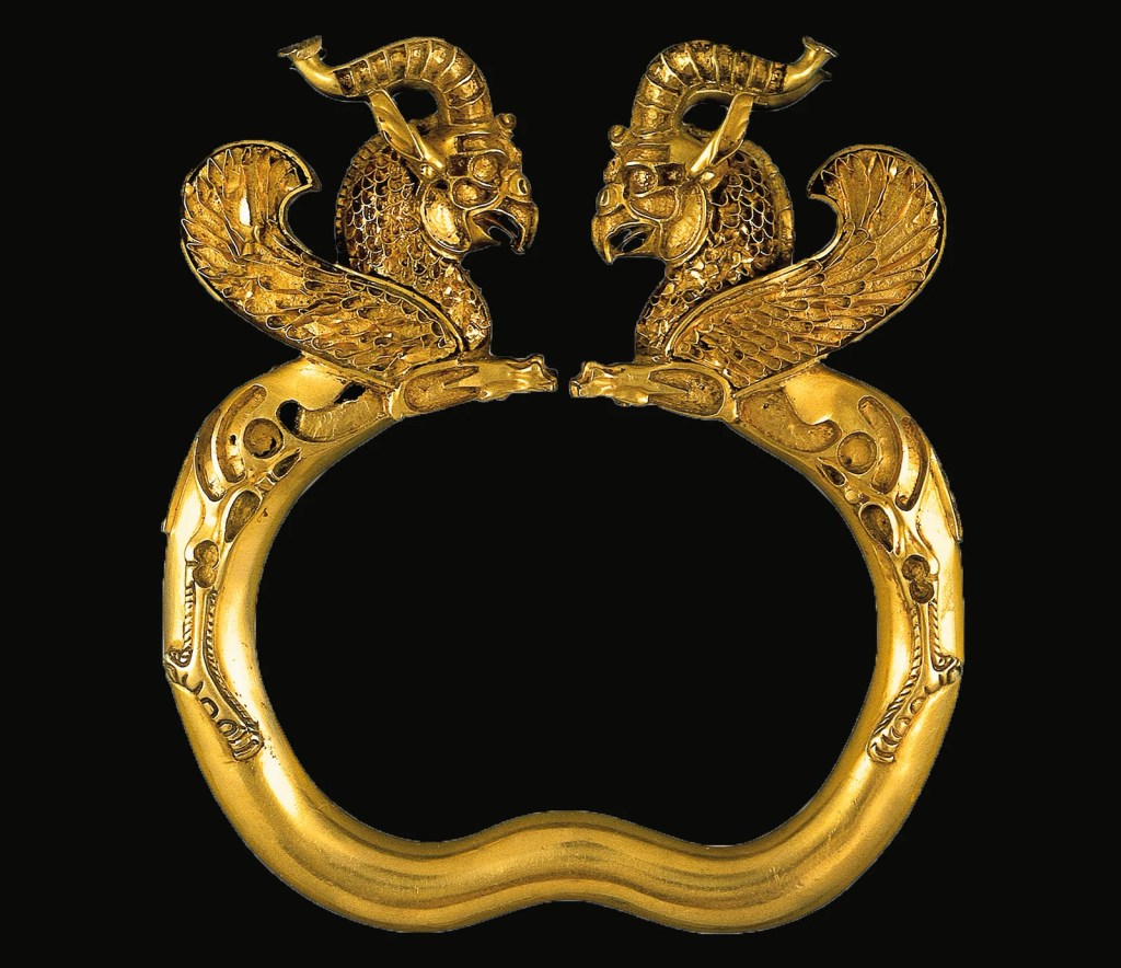 Cabeza de oro del tesoro aqueménida del Oxus. Siglos V-IV a.C. Museo Británico, Londres. Foto: Scala, Firenze.
