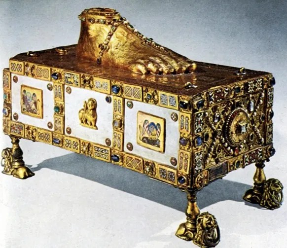El culto a las reliquias se populariza durante la Edad Media; las gentes esperan de ellas efectos mágicos y no dudan en peregrinar cientos de kilómetros para alcanzar las más preciadas, las de los apóstoles Pedro y Pablo y otros incontables santos que hay en Roma, o la de Santiago en Compostela. Esta práctica religiosa evoluciona a lo largo del tiempo, como muestra una conocida anécdota de fines del siglo VI. La emperatriz Constantina, hija del emperador Tiberio II y esposa del también emperador Mauricio, pide al papa Gregorio Magno que le envíe la cabeza o alguna otra parte del cuerpo del apóstol san Pablo para colocarla en la capilla que está construyendo en su palacio de Constantinopla.