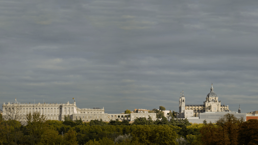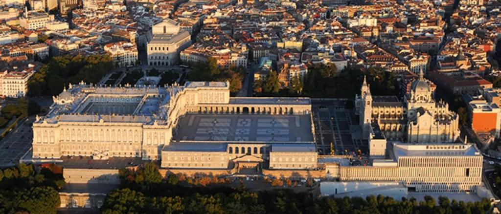 La Galería de las Colecciones Reales, en la parte baja de la fotografía a la derecha, junto a la catedral de la Almudena y el Palacio Real. | Patrimonio Nacional