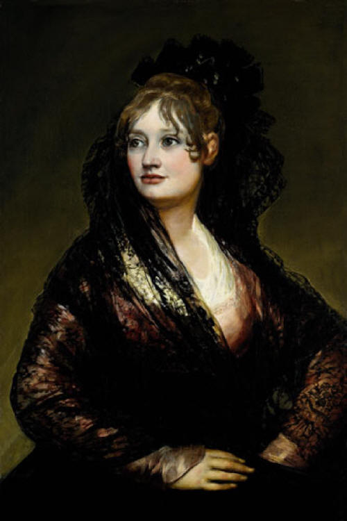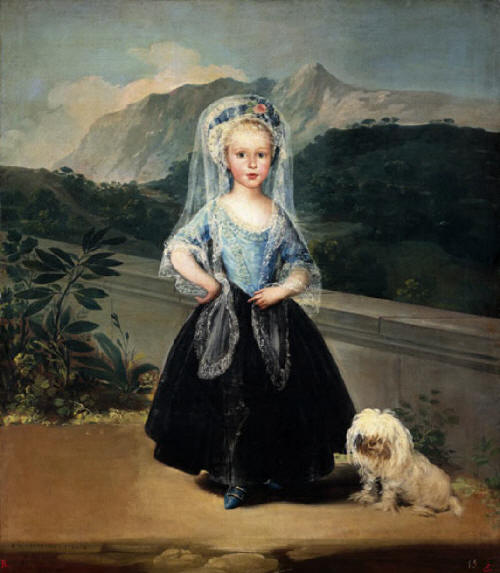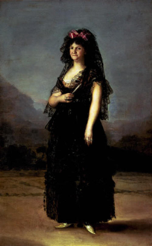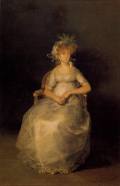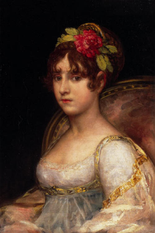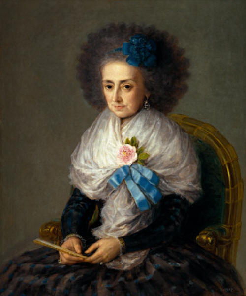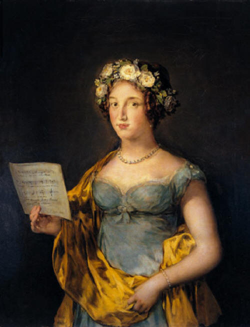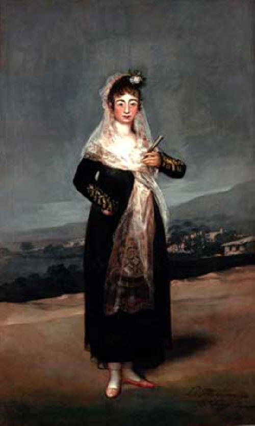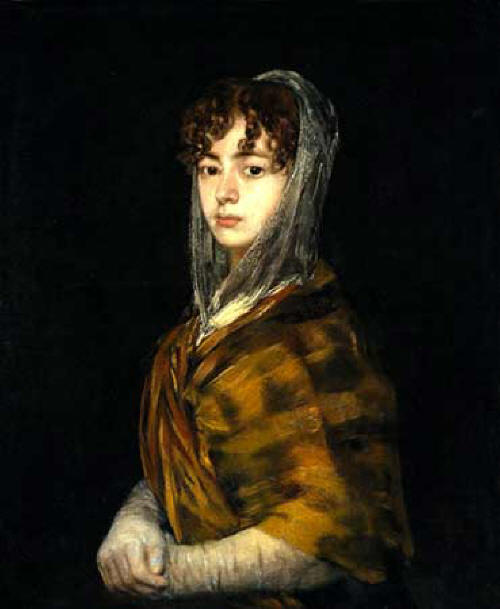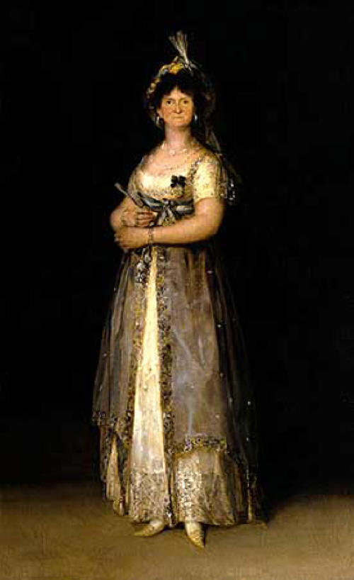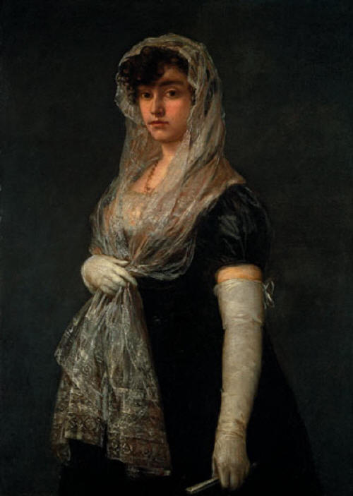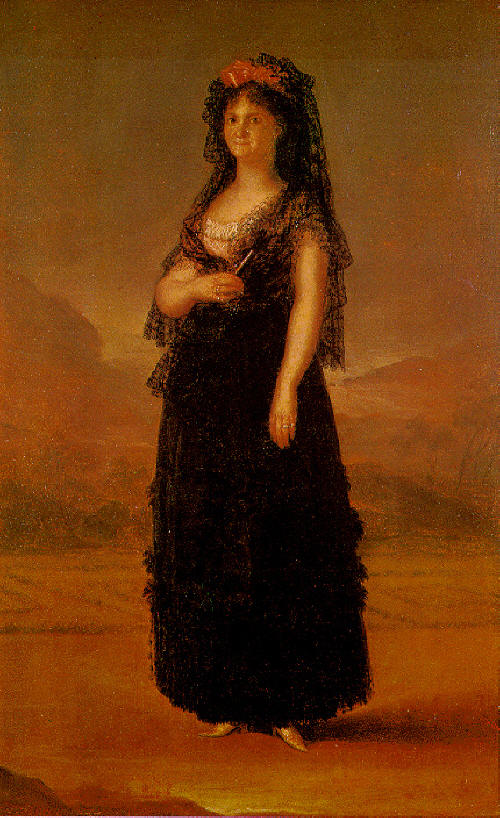 Entre 1800-1808, con el trasfondo de la guerra contra Inglaterra, la derrota de Trafalgar, que finaliza con el motín de Aranjuez y la invasión de Napoleón, Goya sirve a la clientela más poderosa. En este periodo alumbra retratos magníficos de la condesa de Chinchón, la marquesa de Santa Cruz o Manuel Godoy. En 1805, posan para él María Vicenta Barruso Valdés, de 15 años y su madre Leonora Antonia Valdés de Barruso.