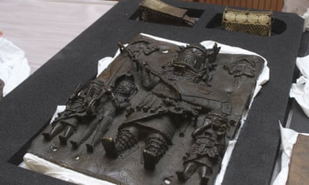 Estos dos bronces de Benín también fueron devueltos al gobierno nigeriano en Abuja.