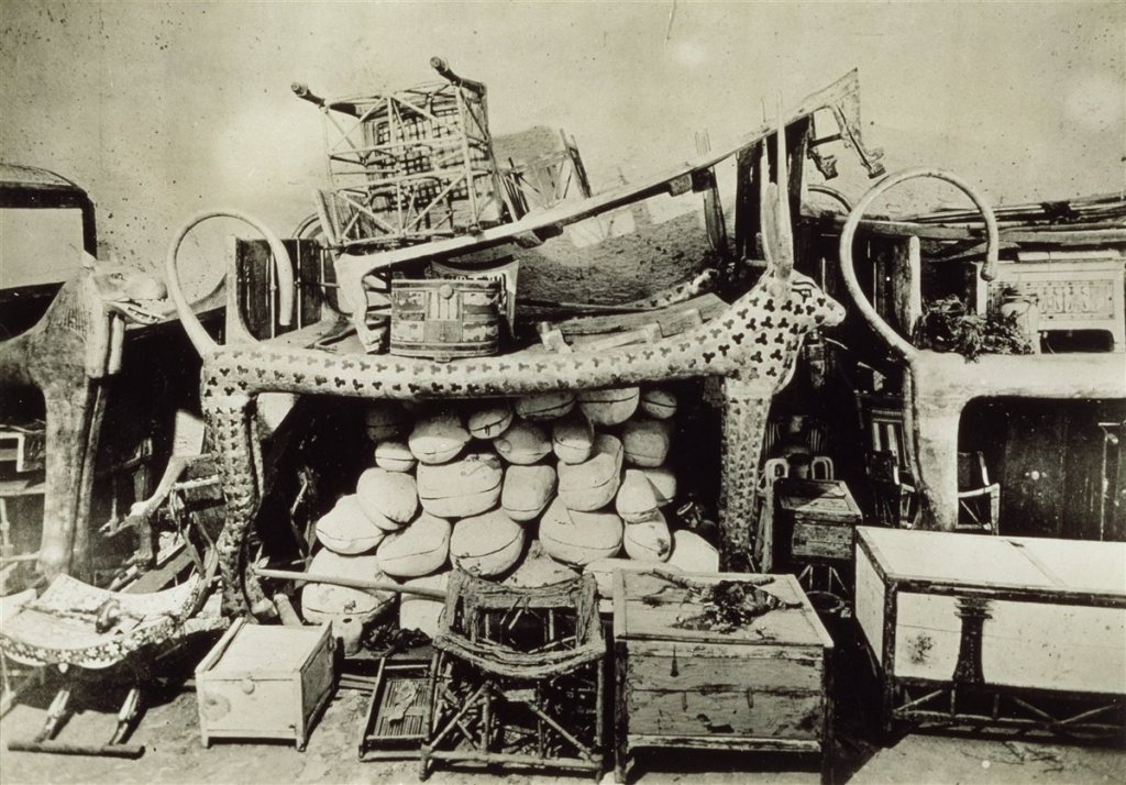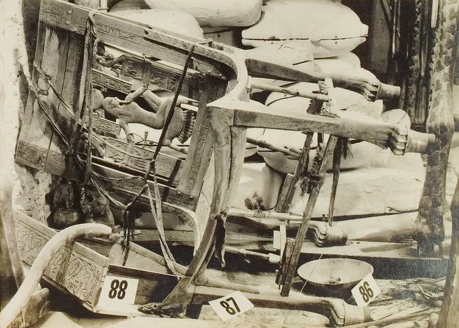 Fotografía del Anexo de la tumba de Tutankamón. Se aprecia el tremendo desorden que reinaba en la estancia en el momento de su descubrimiento.
