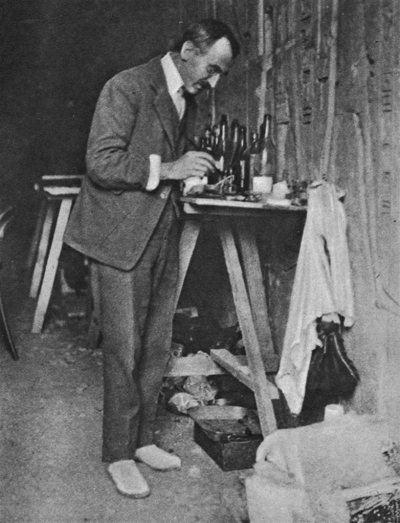 Alfred Lucas, miembro del equipo de Carter, limpia algunos de los objetos procedentes de la tumba de Tutankamón en el laboratorio improvisado.