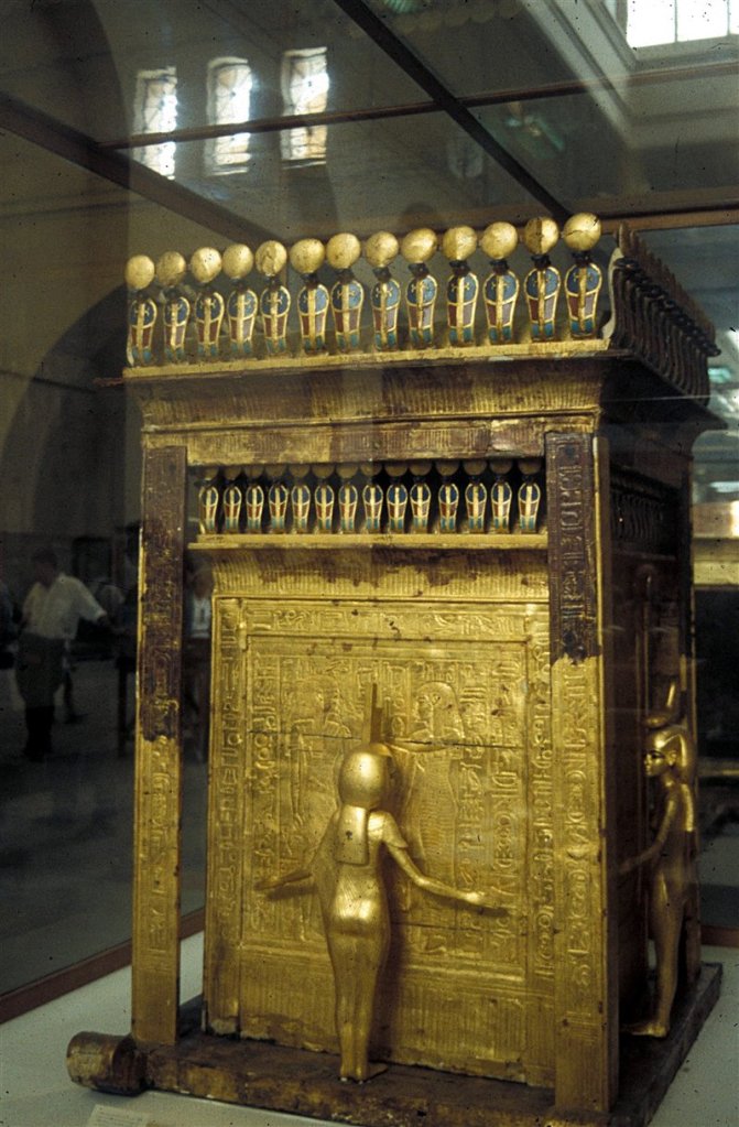 Armario de madera dorada que contenía el cofre canópico de Tutankamón. Museo Egipcio, El Cairo.