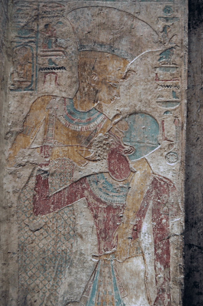 Allí el soberano había ordenada erigir un espléndido salón de fiestas con gigantescas columnas de once metros de altura, mientras que en los otros grandes templos de Egipto, sobre todo en Menfis, sede del templo de Ptah, se celebran ceremonias paralelas.