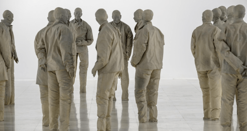 Hoy propiedad de un museo de Düsseldorf. Es una instalación de 27 de sus célebres chinos, personajes con rasgos asiáticos. Siempre ríen. Todos tienen el mismo rostro (están sacados de un mismo molde que descubrió el artista en una tienda de antigüedades), pero sus cuerpos tienen posturas y expresiones distintas. Originalmente eran 30, pero Juan Muñoz donó tres al museo.