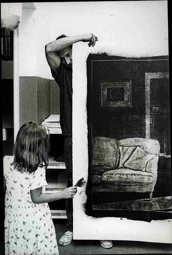 En su trabajo juegan un papel importante los accidentes. Siempre tiene una parte siniestra, pero también otra que emociona. Cuelga de la pared un barco varado cuyo motor no funciona. En la sala de arriba, un coche accidentado, cuyo interior encierra los laberintos arquitectónicos de Piranesi, que formó parte de una instalación en Santa Fe.