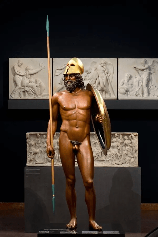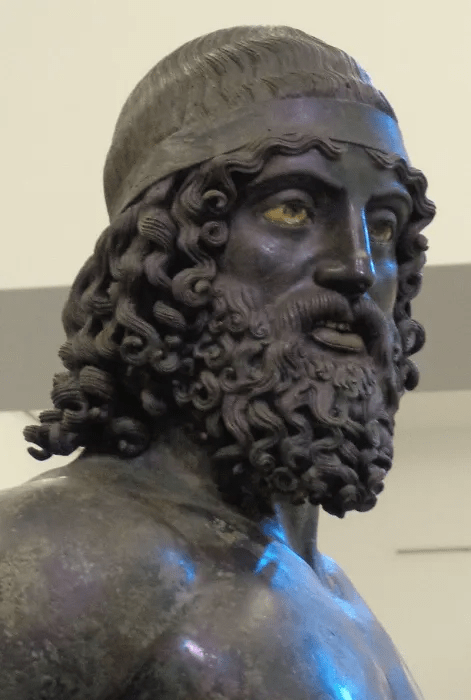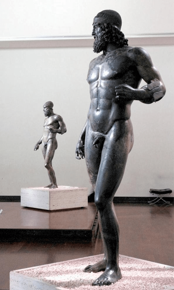 Los Bronces de Riace eran rubios y dorados y se fabricaron en Argos, en el Peloponeso griego, ambos a mediados del siglo V a.C., en el mismo taller pero por diferentes maestros.