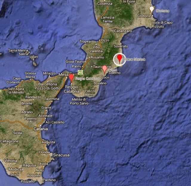 Las dos esculturas griegas son encontradas en las cercanías de la localidad de Riace, en la provincia de Regio, en 1972.