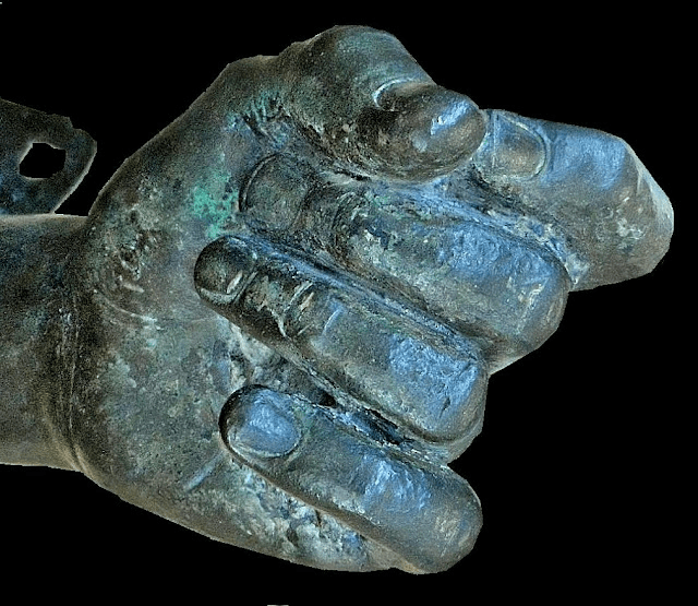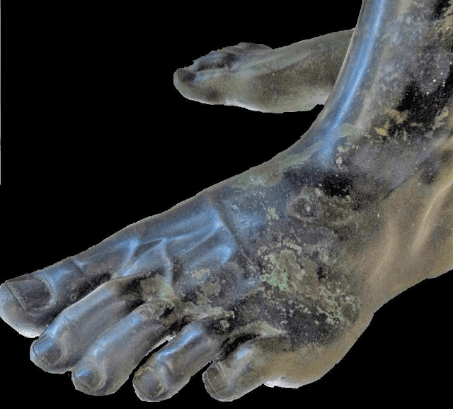 Pero dado el tamaño de muchas de las figuras es normal que cantidades importantes de barro queden presas en el interior del bronce, como ocurre en el caso de los dos guerreros de Riace, lo que  permite a los investigadores su análisis para poder determinar con mayor o menor exactitud su procedencia.