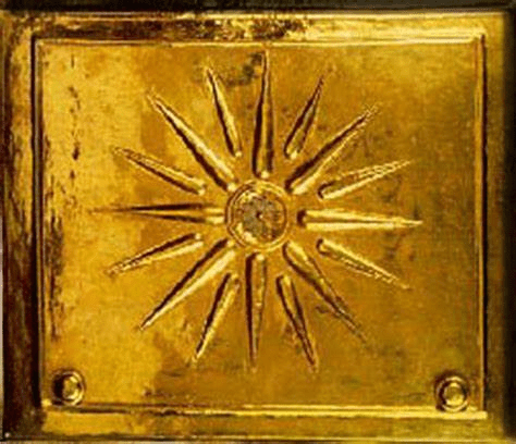 La tumba estaba magníficamente decorada con pinturas murales y en su interior había un sarcófago de mármol con una urna funeraria de oro con la estrella de 16 puntas, símbolo de la realeza macedonia.