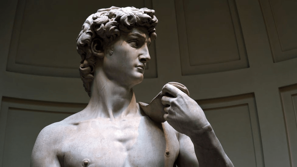 La escultura del David de Miguel Ángel es una de las obras artísticas más reconocidas en todo el mundo, símbolo del Renacimiento italiano y ejemplo del canon de belleza clásico. La escultura representa desnudo al rey bíblico en el momento previo a enfrentarse con Goliat, cuya vida se describe en los libros de Samuel. Según Hollberg: