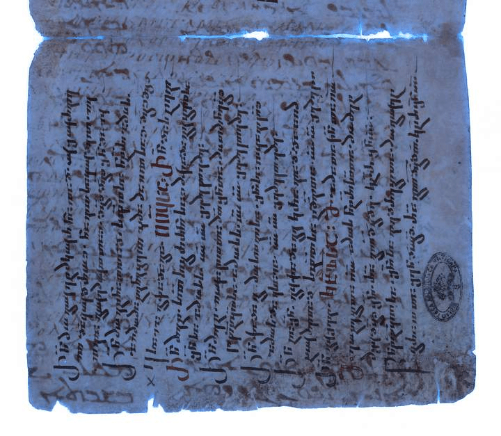 Cuatro siglos después, en el X, un prolífico escriba georgiano, Iovane Zosime, reutilizó éste y otros antiguos pergaminos escritos en diversos idiomas, borró los textos y confeccionó un códice sobre liturgia georgiana que hoy se conserva incompleto en el Monasterio de Santa Catalina del Monte Sinai (Egipto). Un fragmento de este palimpsesto que se creía perdido fue descubierto hace unos años en un manuscrito adquirido por la Biblioteca Vaticana en el siglo XX. En él, Grigory Kessel ha conseguido ahora que las palabras originales que fueron borradas vuelvan a ser legibles. Se trata de una de las primeras traducciones de los Evangelios. Dice: