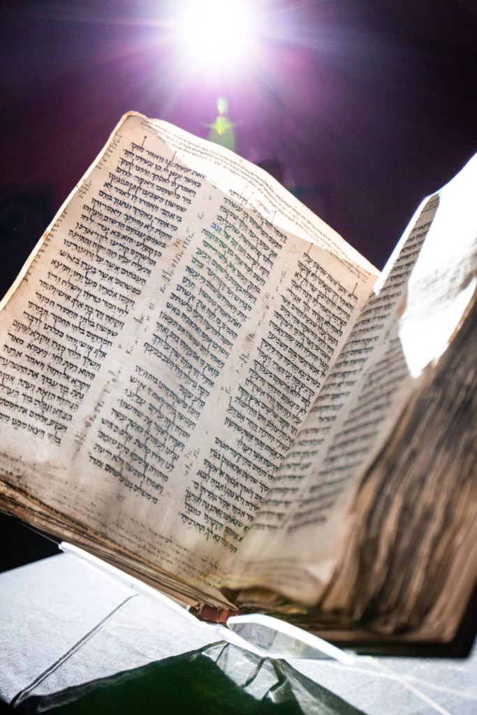Autentificado por la prueba de carbono 14 y en un estado de conservación excepcional, contiene los 24 libros de la Biblia hebrea divididos en tres partes: el Pentateuco, los Profetas y los Escritos. Solo le faltan 12 hojas, y precede a la primera Biblia hebrea completa, el Codice de Leningrado, en casi un siglo.