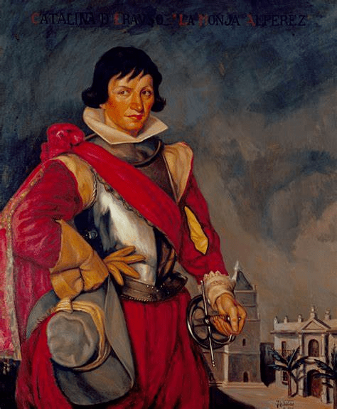 Pendenciera, ludópata y asesina, Catalina de Erauso busca fortuna en América como hombre donde vive peripecias de novela de intriga.
