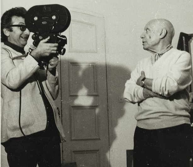 Lucien Clergue filmando a Picasso en Notre-Dame-de-Vie durante el rodaje de ‘Picasso, guerre, amour et paix’. Mougins, 11 de octubre de 1969 © ATELIER LUCIEN CLERGUE/© SUCCESION PABLO PICASSO, VEGAP, MADRID