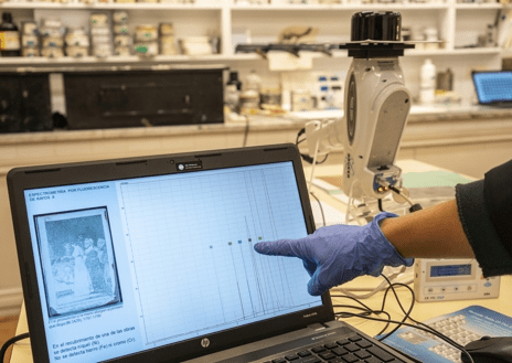 Antes de iniciarse el proceso y una vez finalizado, las planchas son fotografiadas con un escáner aéreo de alta definición. También se realizan fotografías macroscópicas de lesiones y detalles que ayudan a documentar los trabajos de conservación.