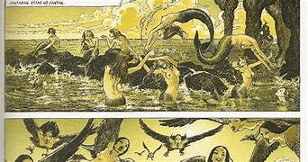 En la mitología y la literatura clásicas hay seres híbridos, como las sirenas, con partes de su cuerpo con forma humana y otras partes con rasgos animalescos: harpías, gorgonas, esfinges, asociadas a lo negativo, a la perdición de los hombres. Todas son mujeres.