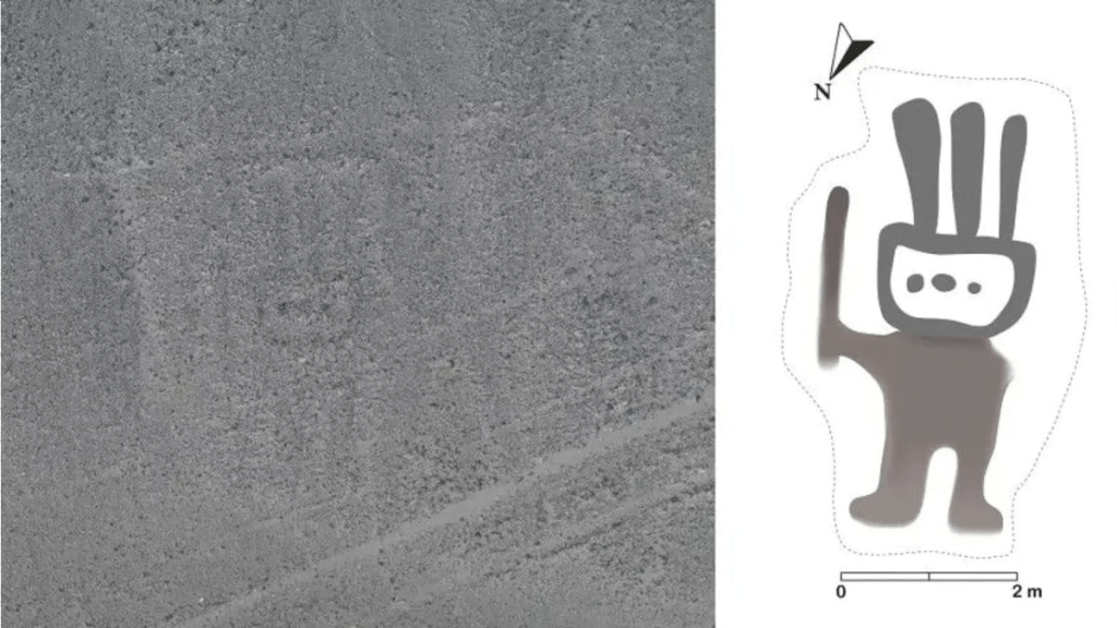 Una de las figuras descubiertas por la inteligencia artificial en la Pampa de Nasca del desierto peruano. | Fuente: The Yamagata University Institute of Nasca