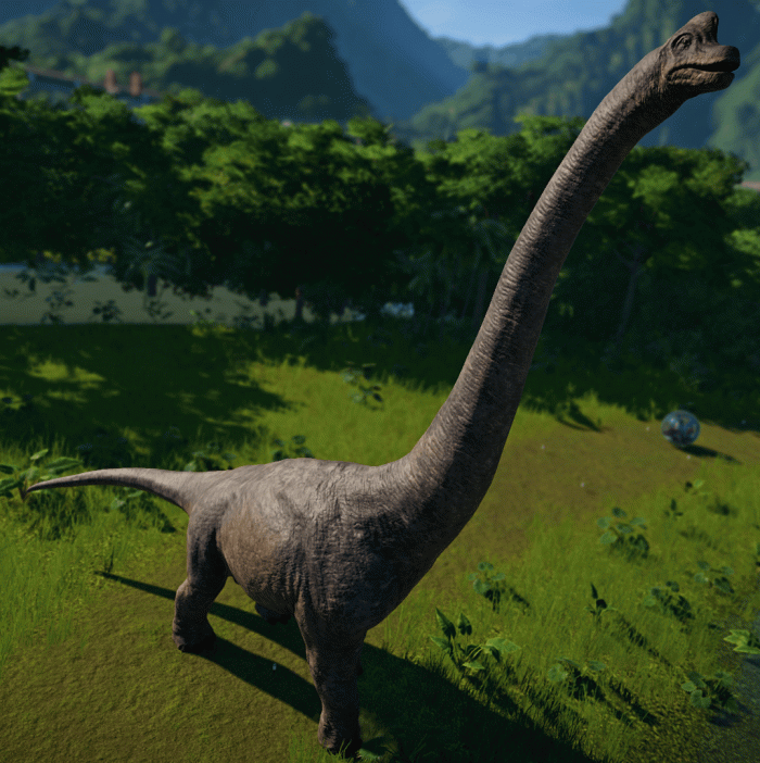 Comía ramas de los altos de los arboles (9 metros) y era de sangre caliente y la la representación de pararse sobre sus patas traseras en la película Parque Jurásico, es falsa.